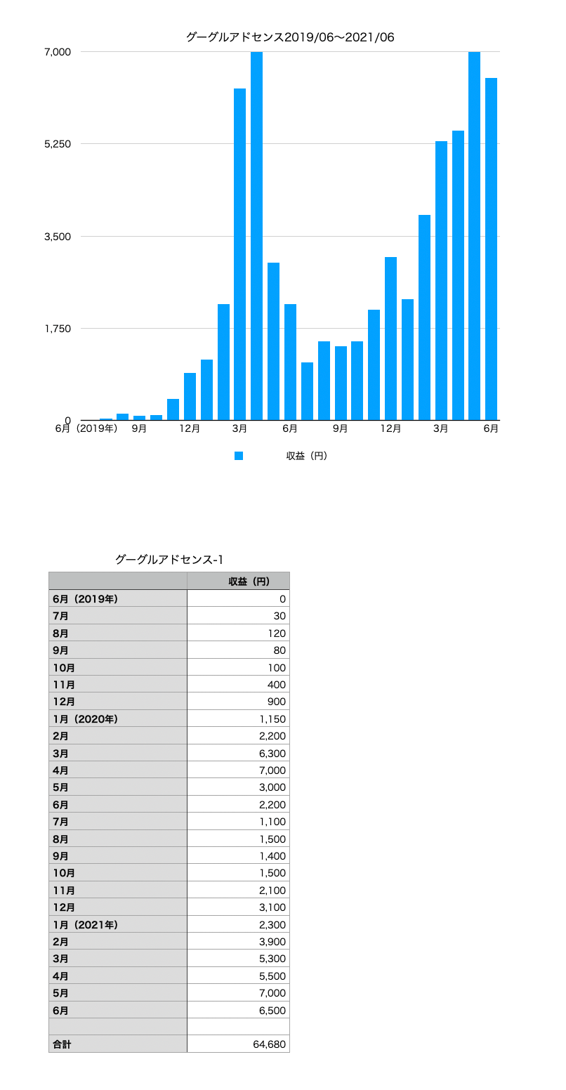まあ、トータルとしては、2年間コツコツ記事を更新した割には、まだ月3万円にしかなっていないというのは、決して大成功とは言えません。