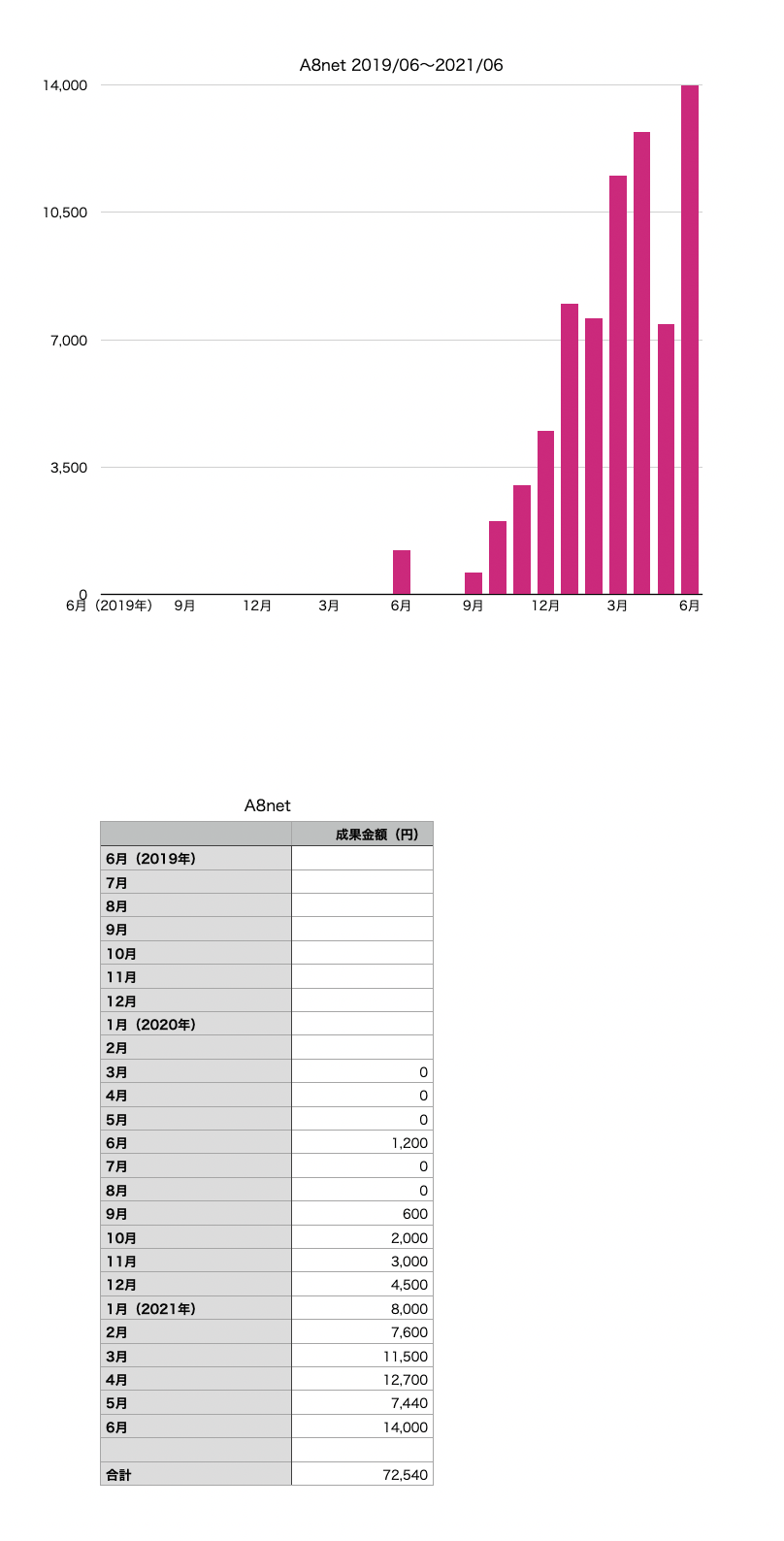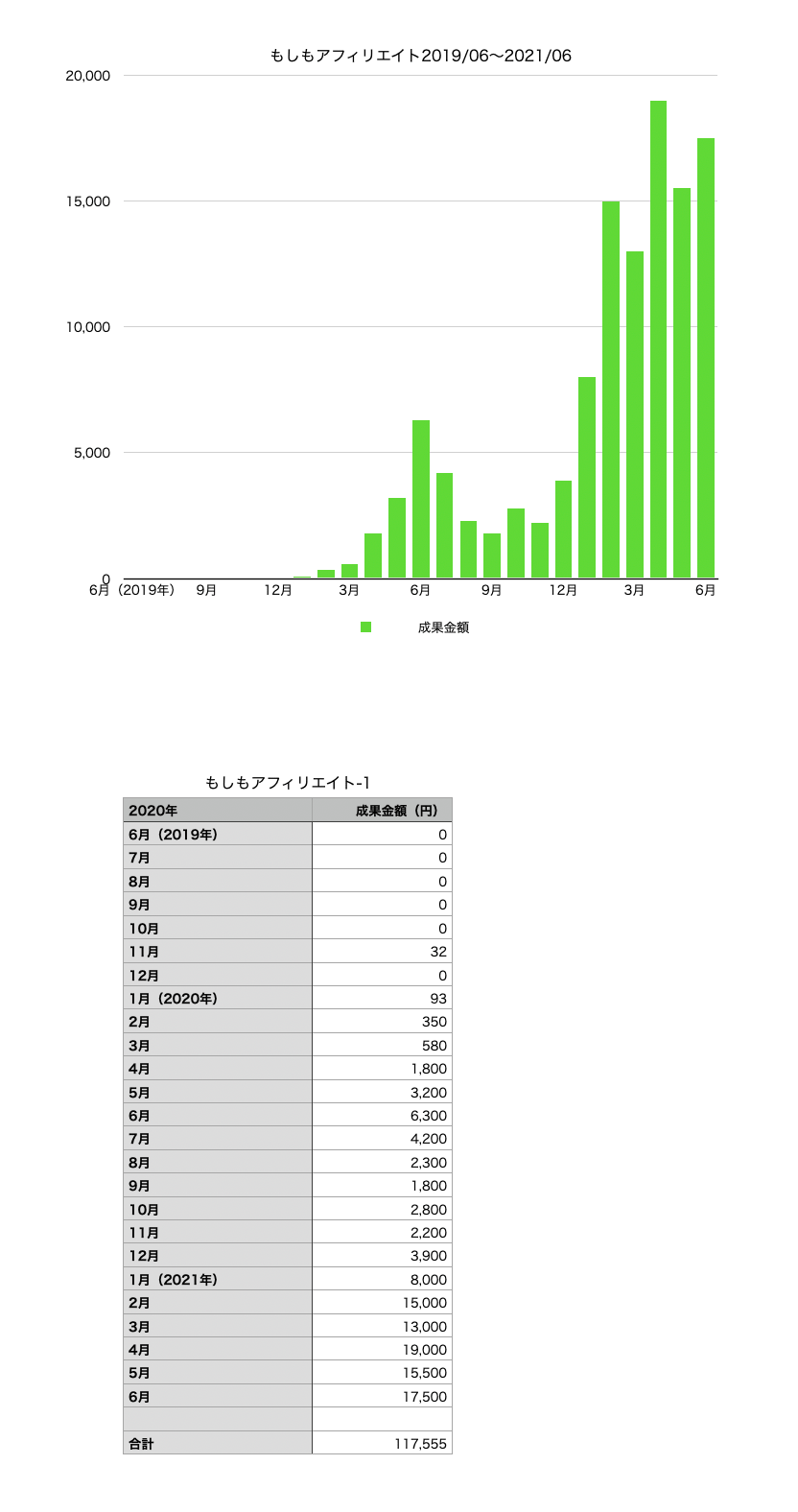 もしもアフェリエイトの2年間の収入はこちら。▼