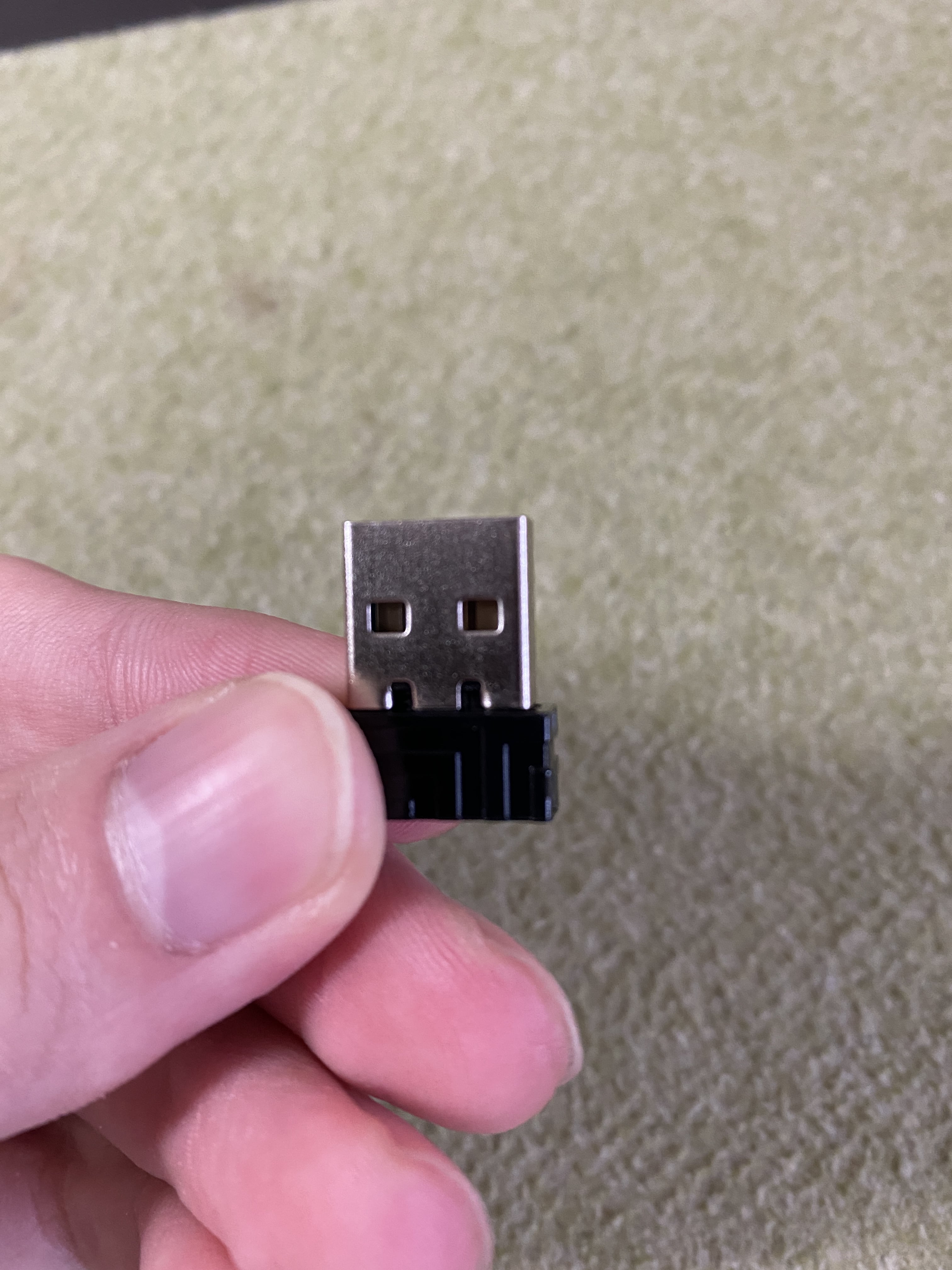 Bluetooth接続するときは、レシーバーをPCにセットしないといけません。▼