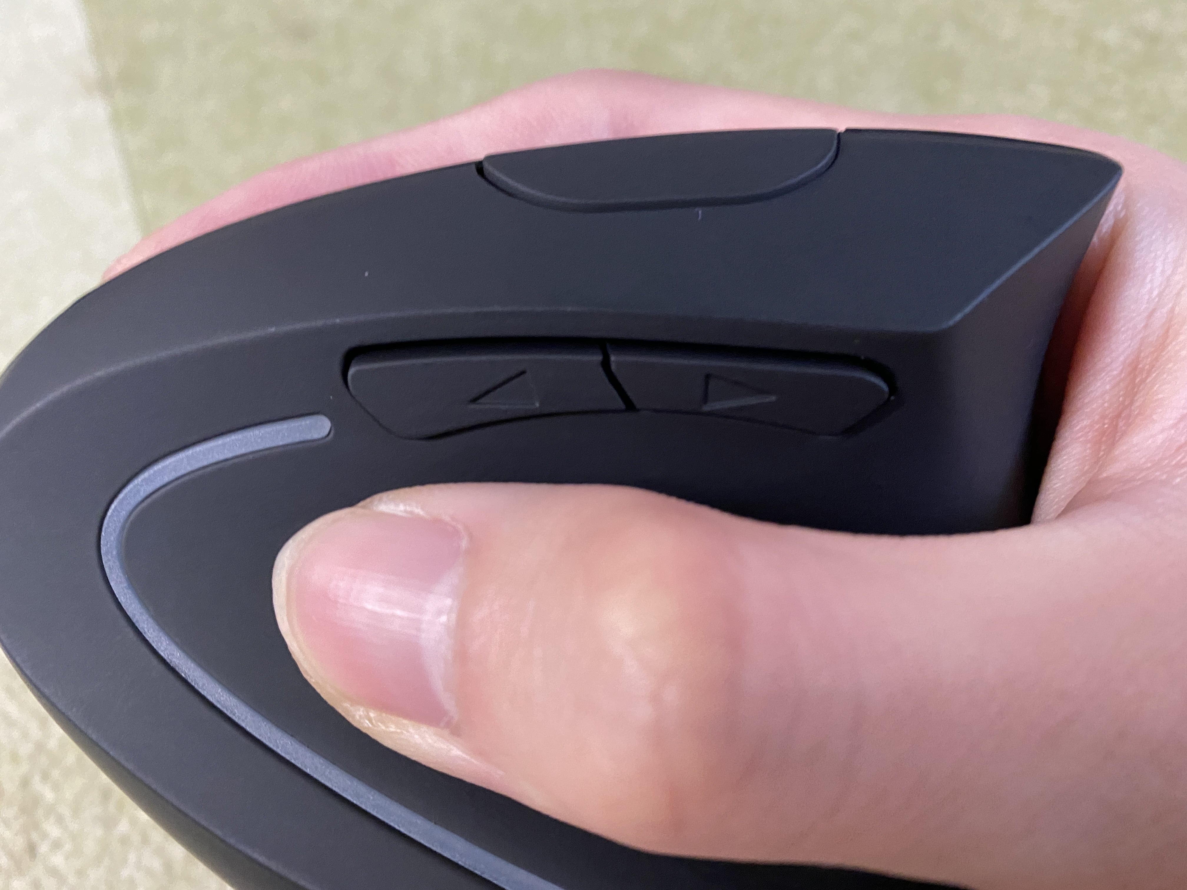 親指の上にボタンが2つあって、それぞれ「進む」・「戻る」ボタンになっているのですが、これが押しにくい!