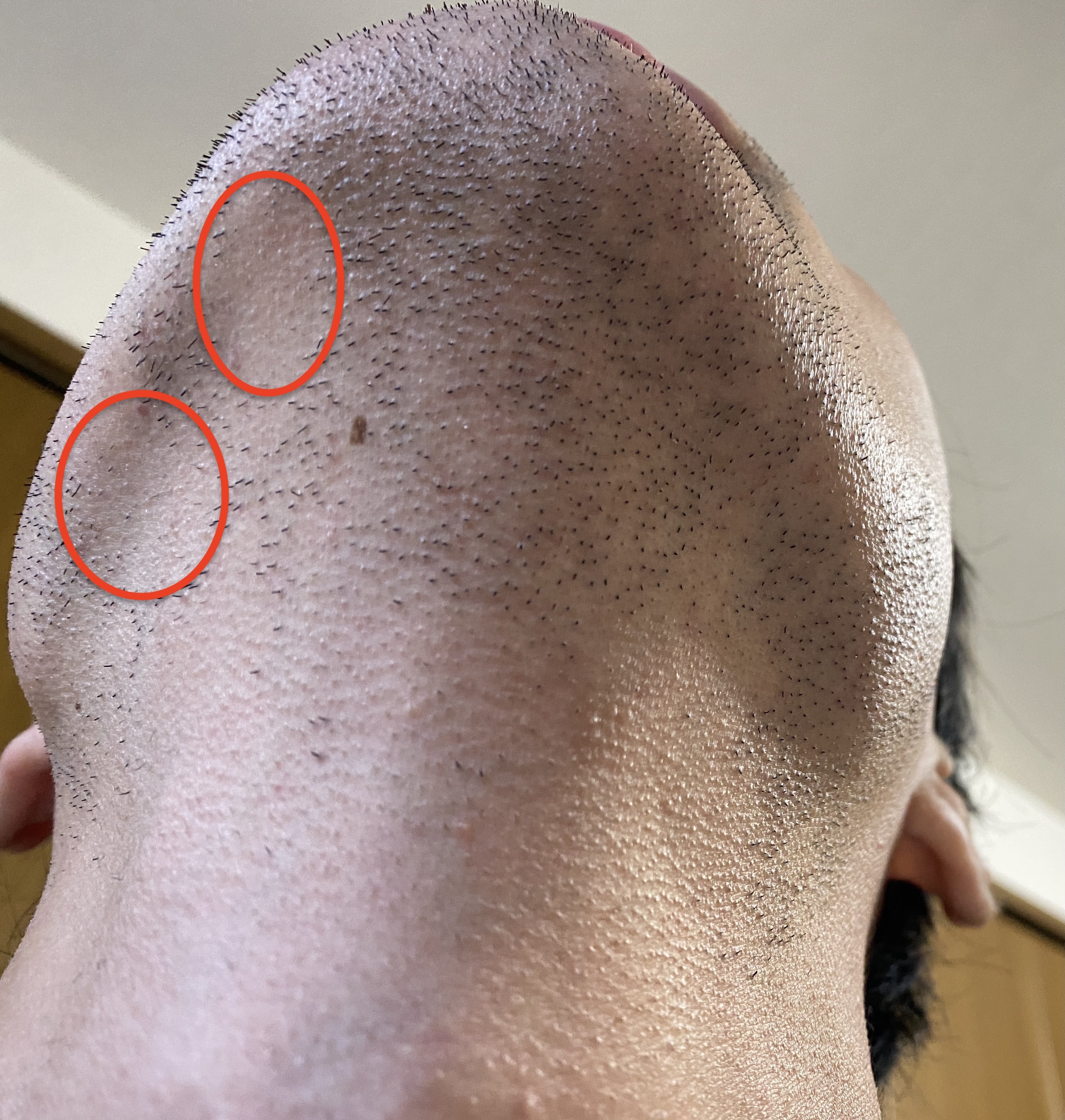 こちらは、前回と比べて特別に薄くなった感じはあまりないですが、赤枠で囲ったところは、まったく生えてこなくなりました。