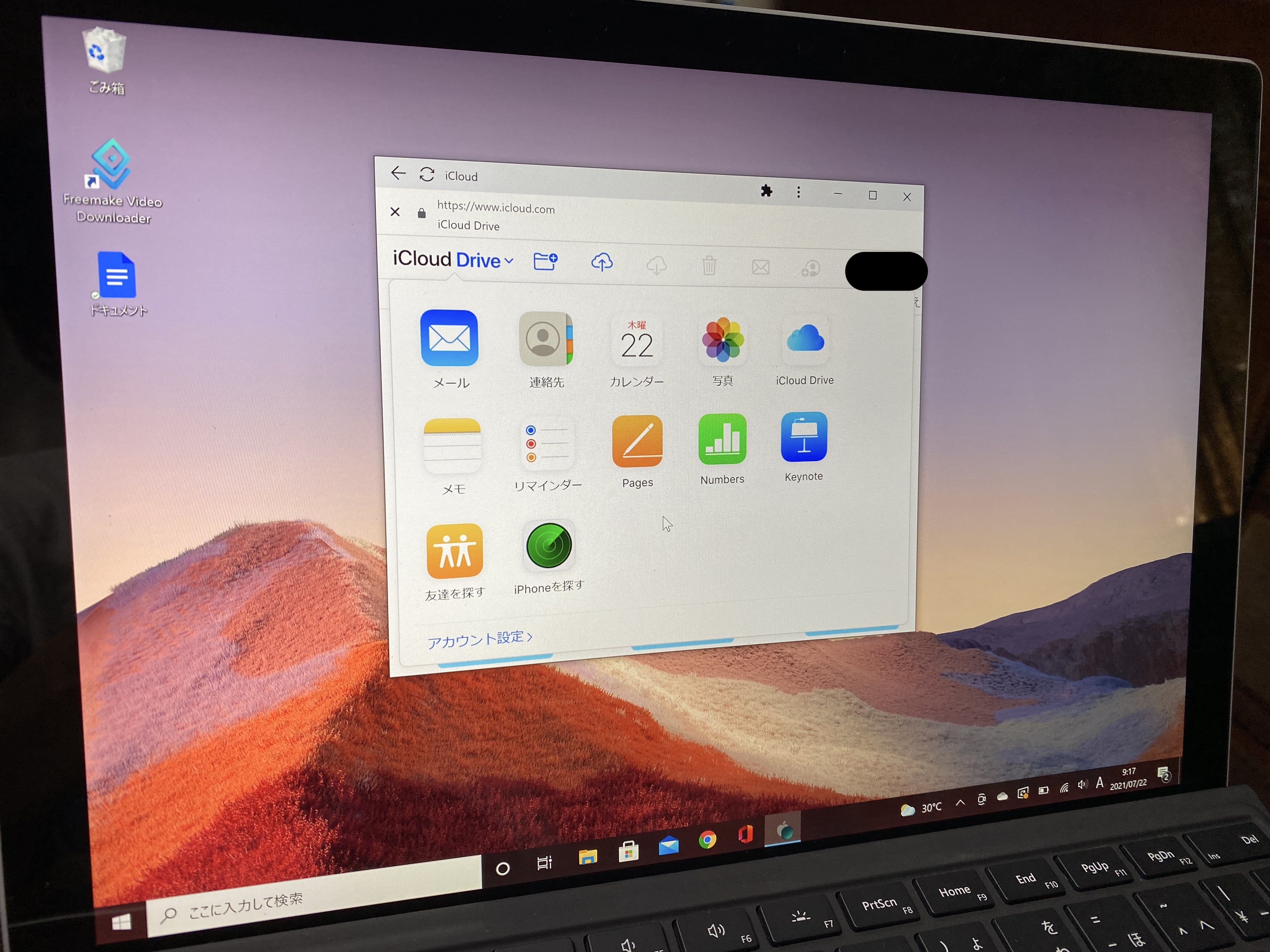 WindowsにAppleのマークがあるのはなんか変ですが、WindowsからでもちゃんとiCloudにアクセスできるので、安心してください。