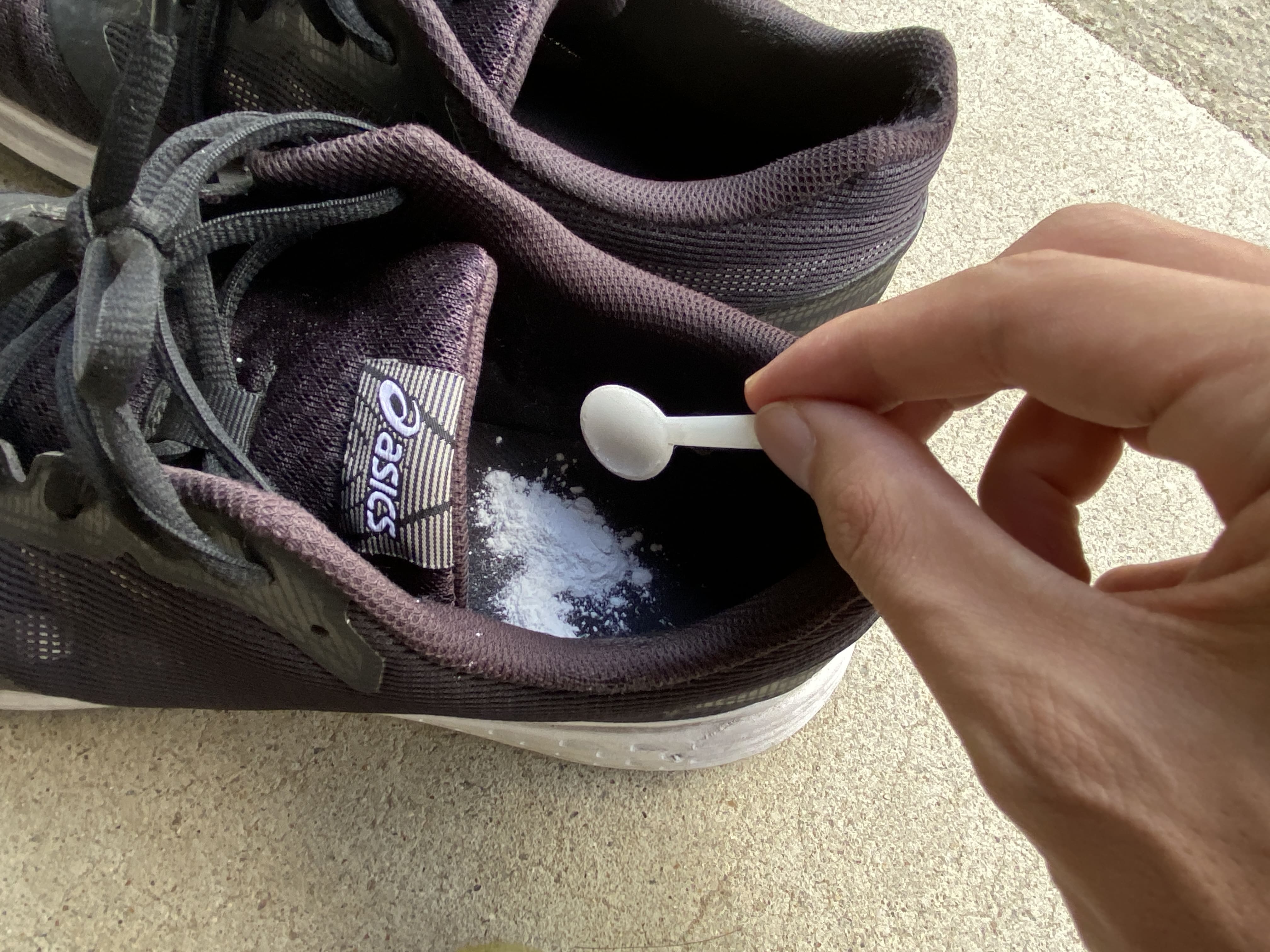 もう片方の靴にも、同じやり方で粉を入れましょう。