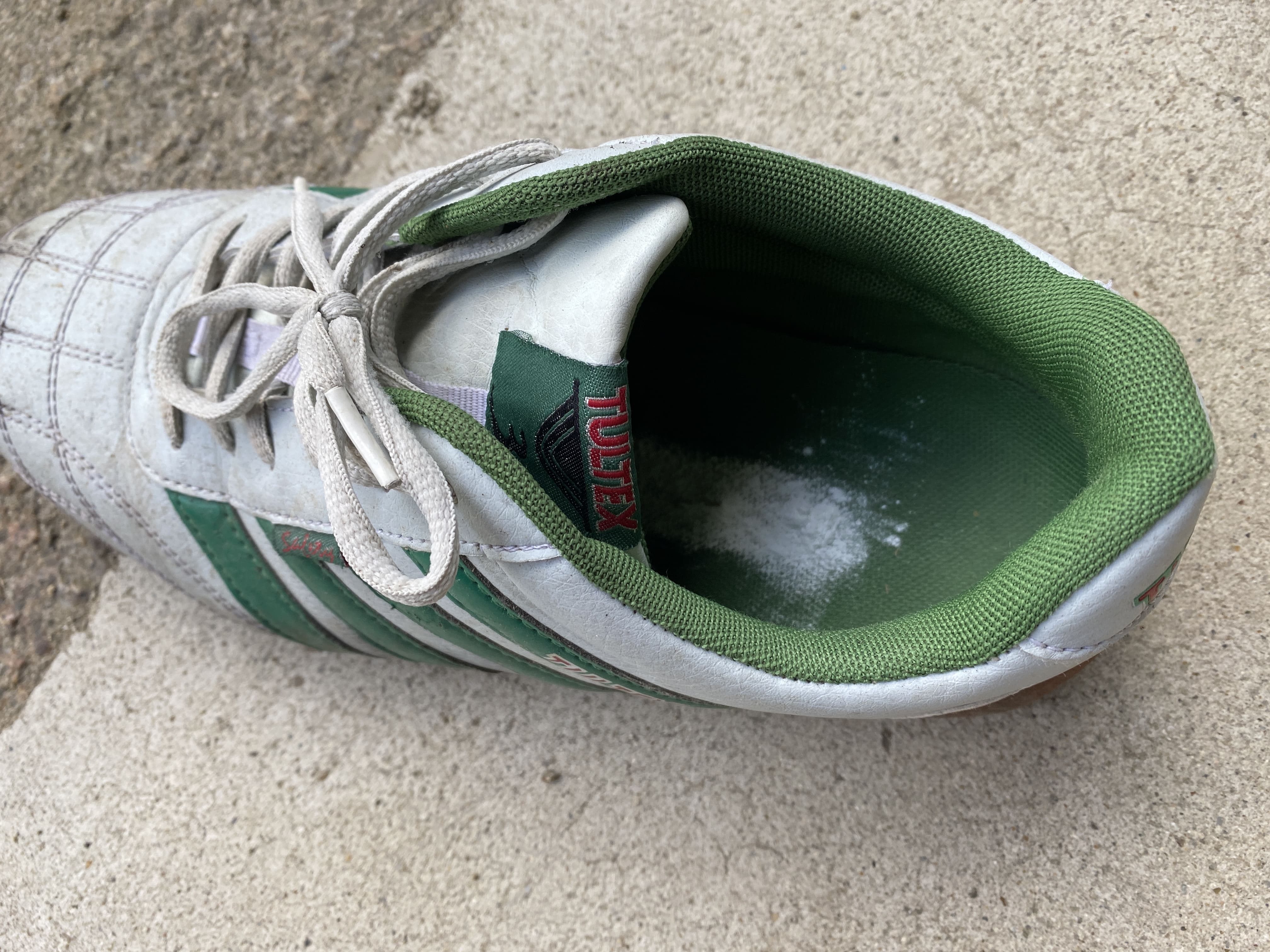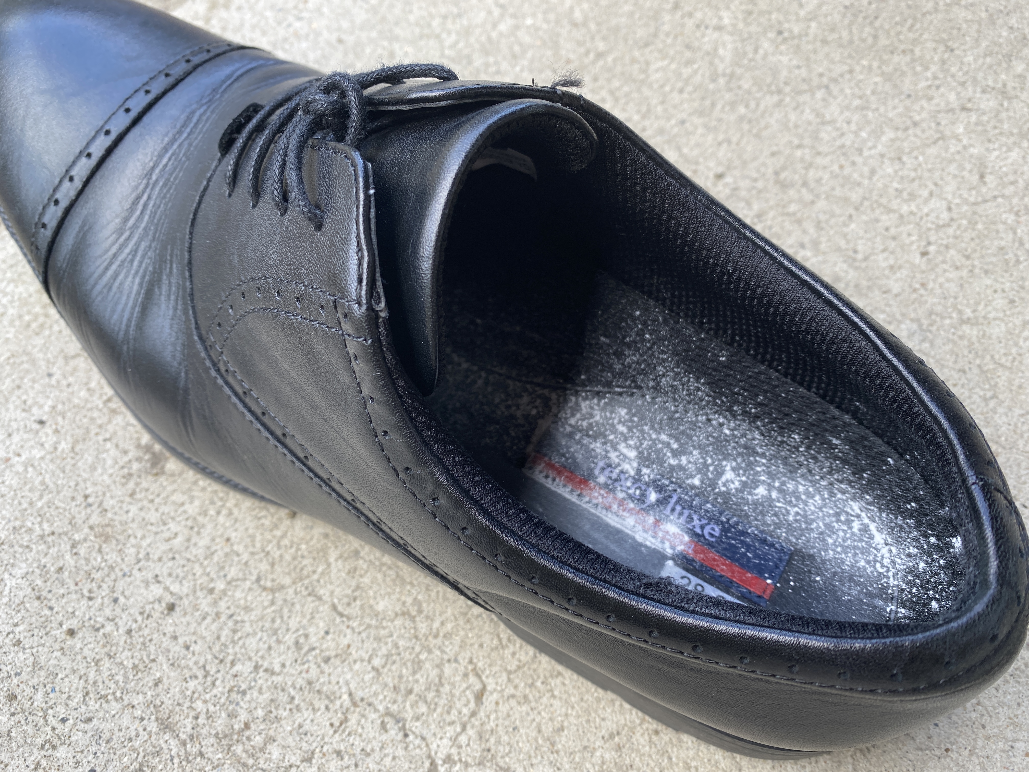 僕の感覚では、5時間くらい靴をはいていると粉が消えます。
