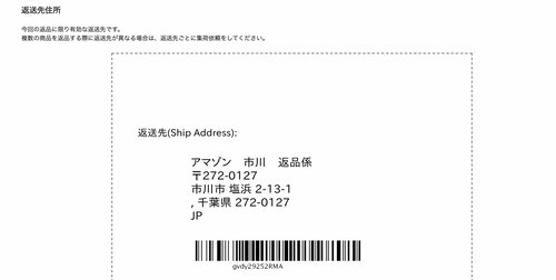 アマゾンで何度か返品している人には、おなじみの住所ですね。