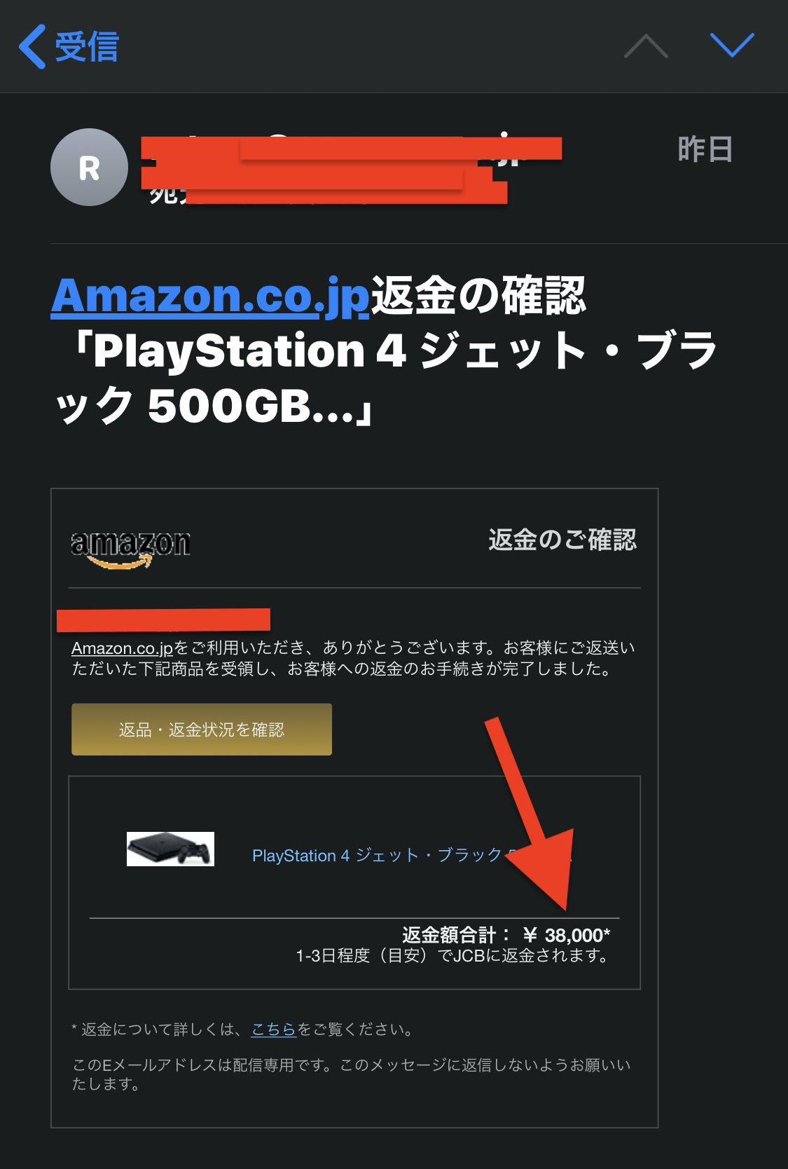 4.後日、「返品完了」のメールが届いた