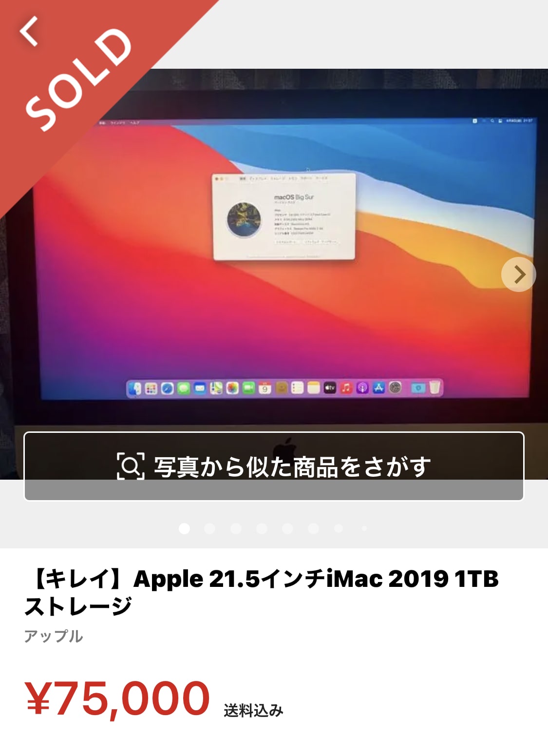僕の場合は、旧式のIntel搭載iMac21.5インチの中古をメルカリで7万5000円で購入できました。▼