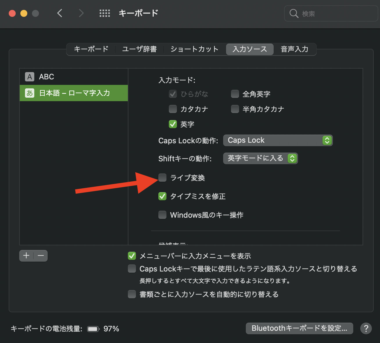 とにかく僕はライブ変換がキライなので絶対OFFにします。