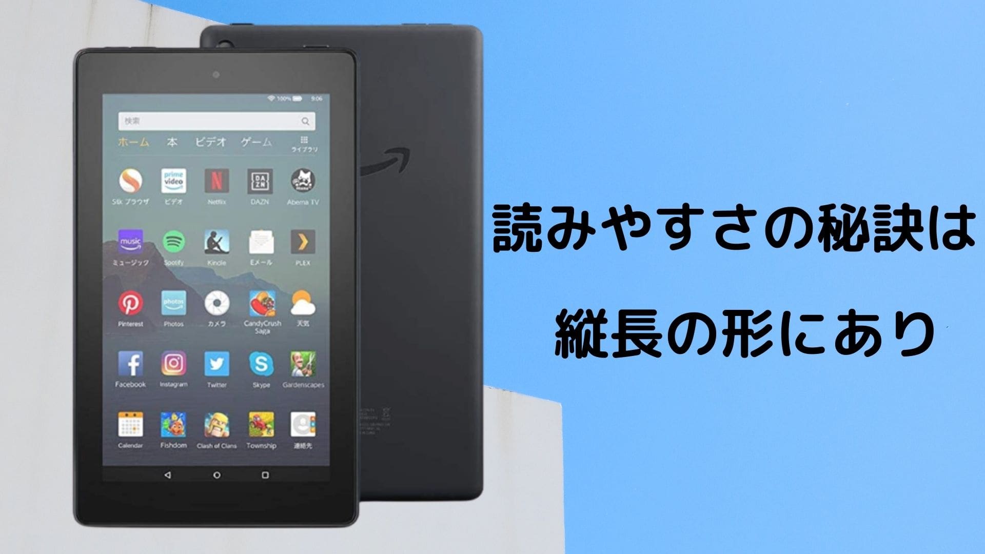 kindle fire7のような縦長の形だと、たしかに活字だけの本は読みやすい。