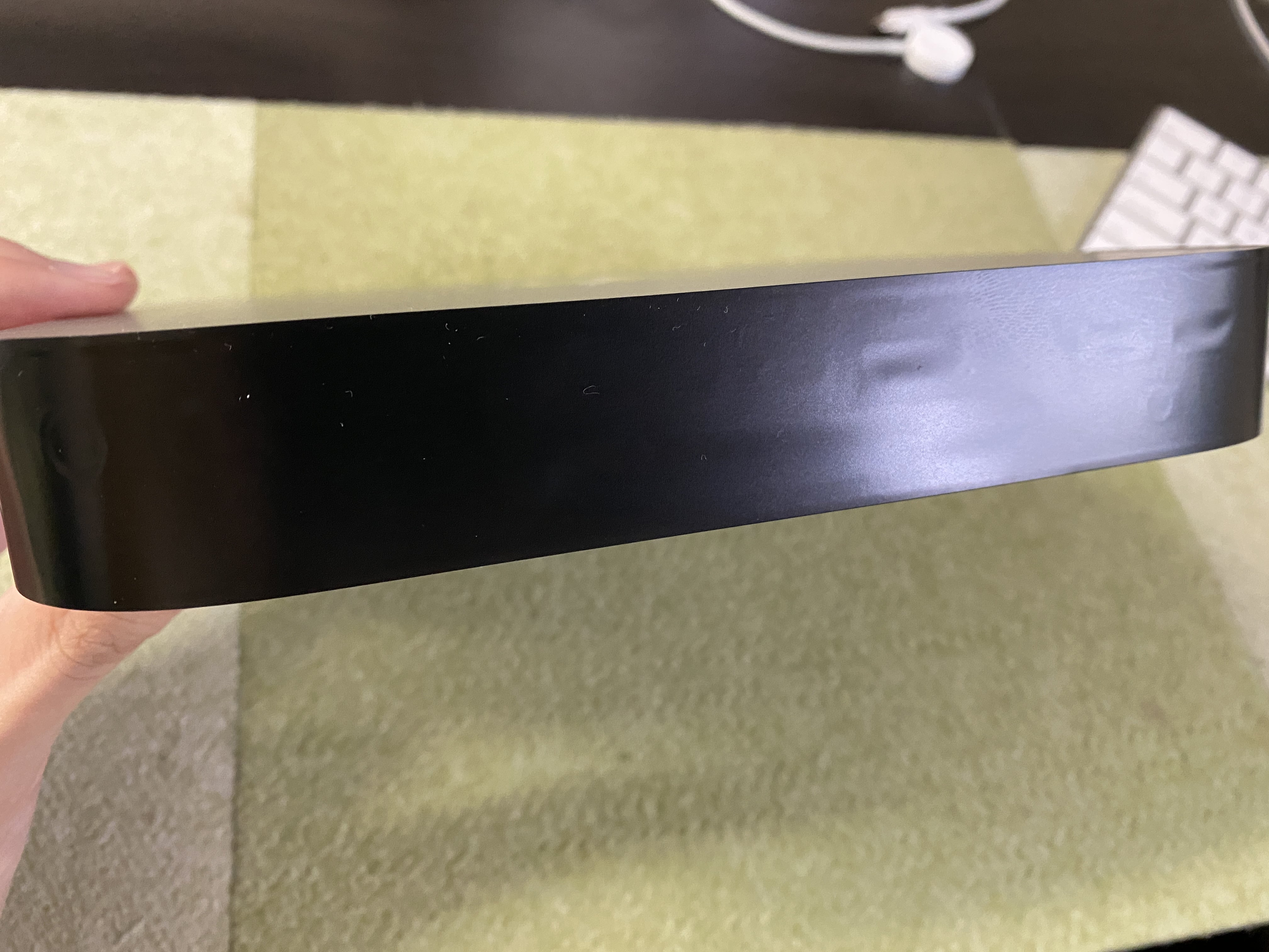 Mac mini本体の後ろ側には、黒いテープが貼られています。▼
