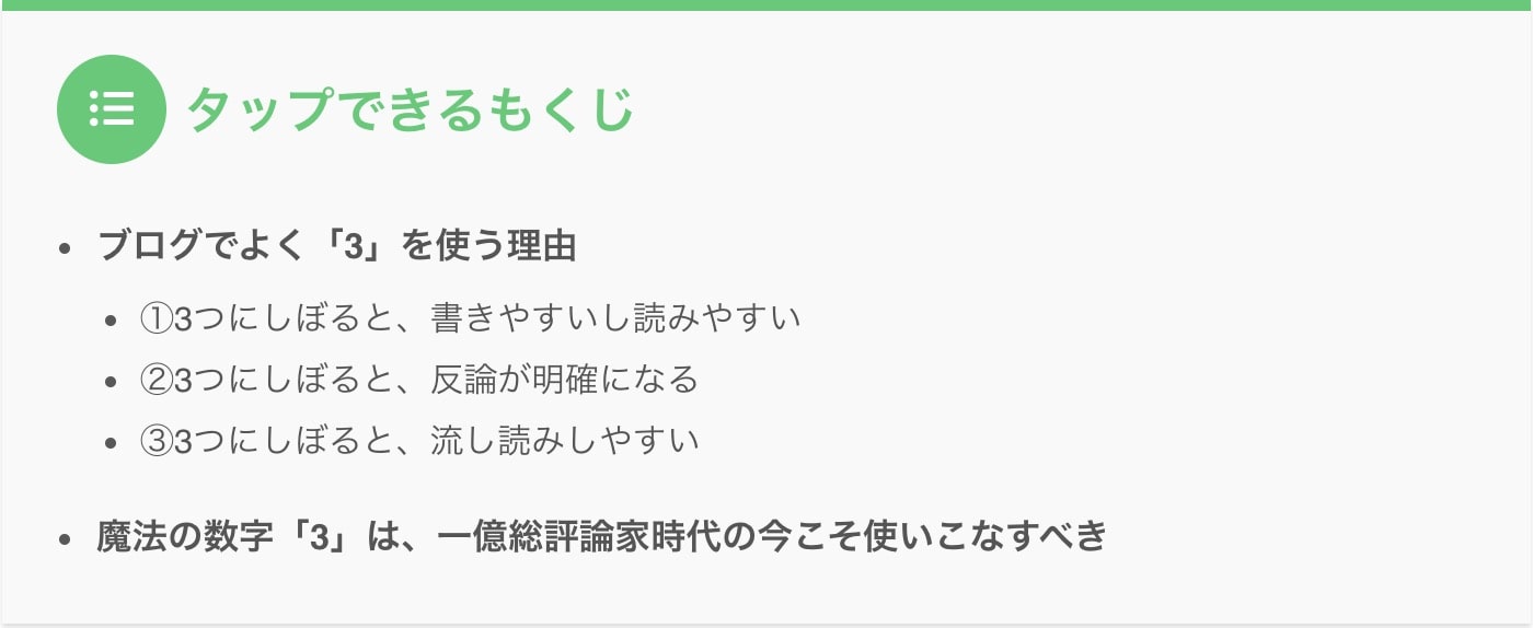 いくらネットの文章が流し読みされるとはいえ、目次だけはじっくり読む人が多いです。