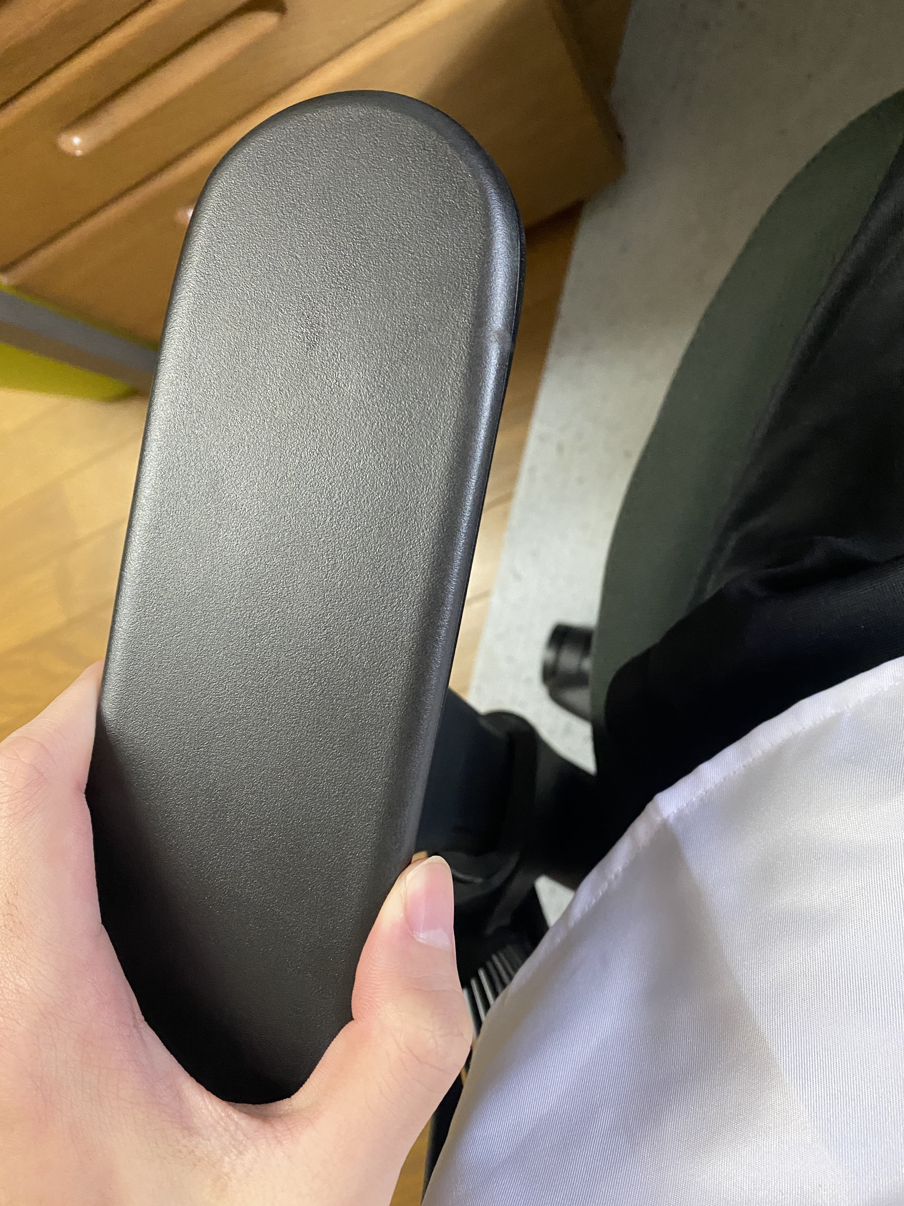 他の部分は高級感があるのに、なぜか肘掛けだけはとても8万円の高級チェアとは思えません。