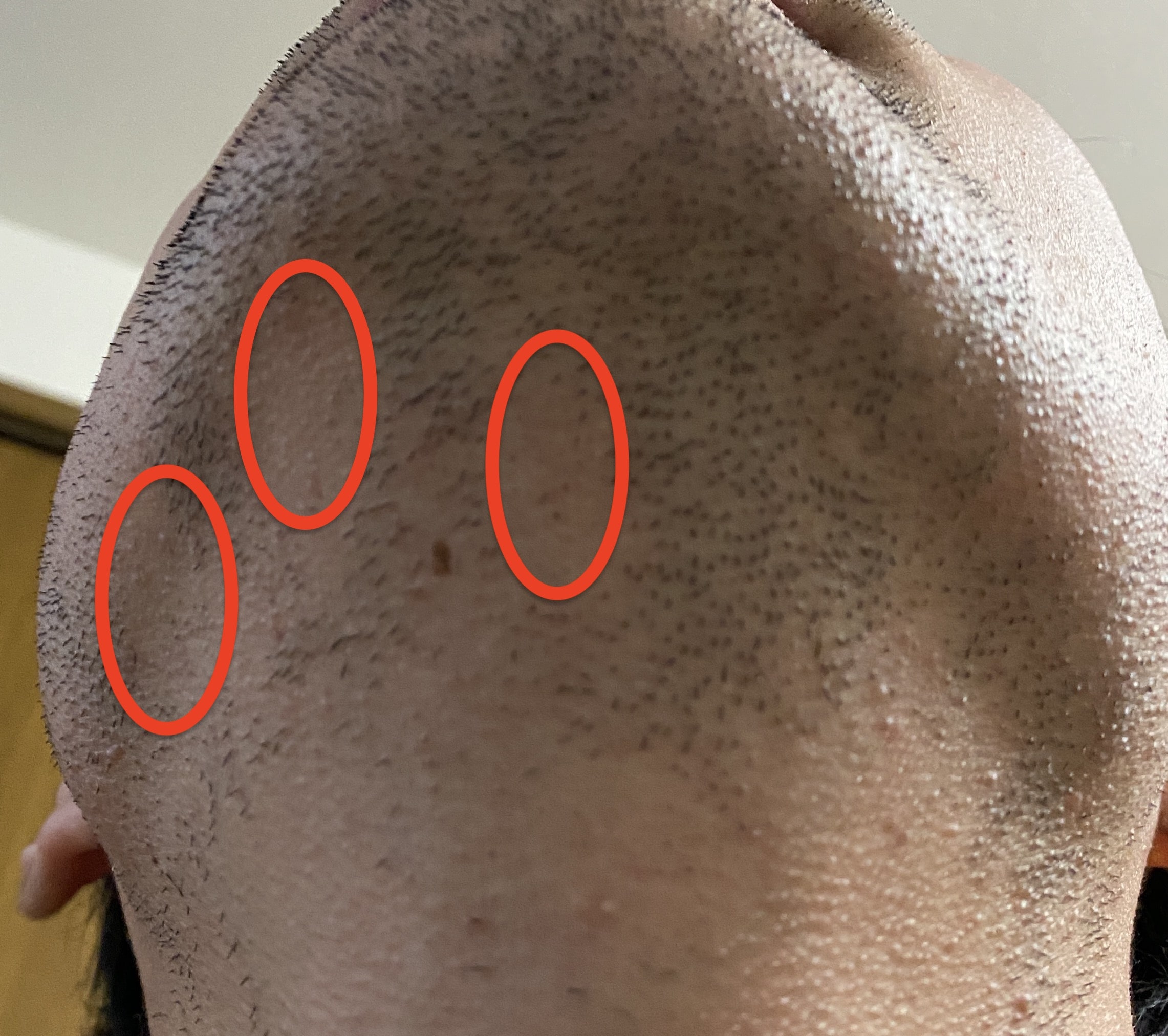 ところどころまったくヒゲが生えていない、ツルツルの聖地が生まれています。