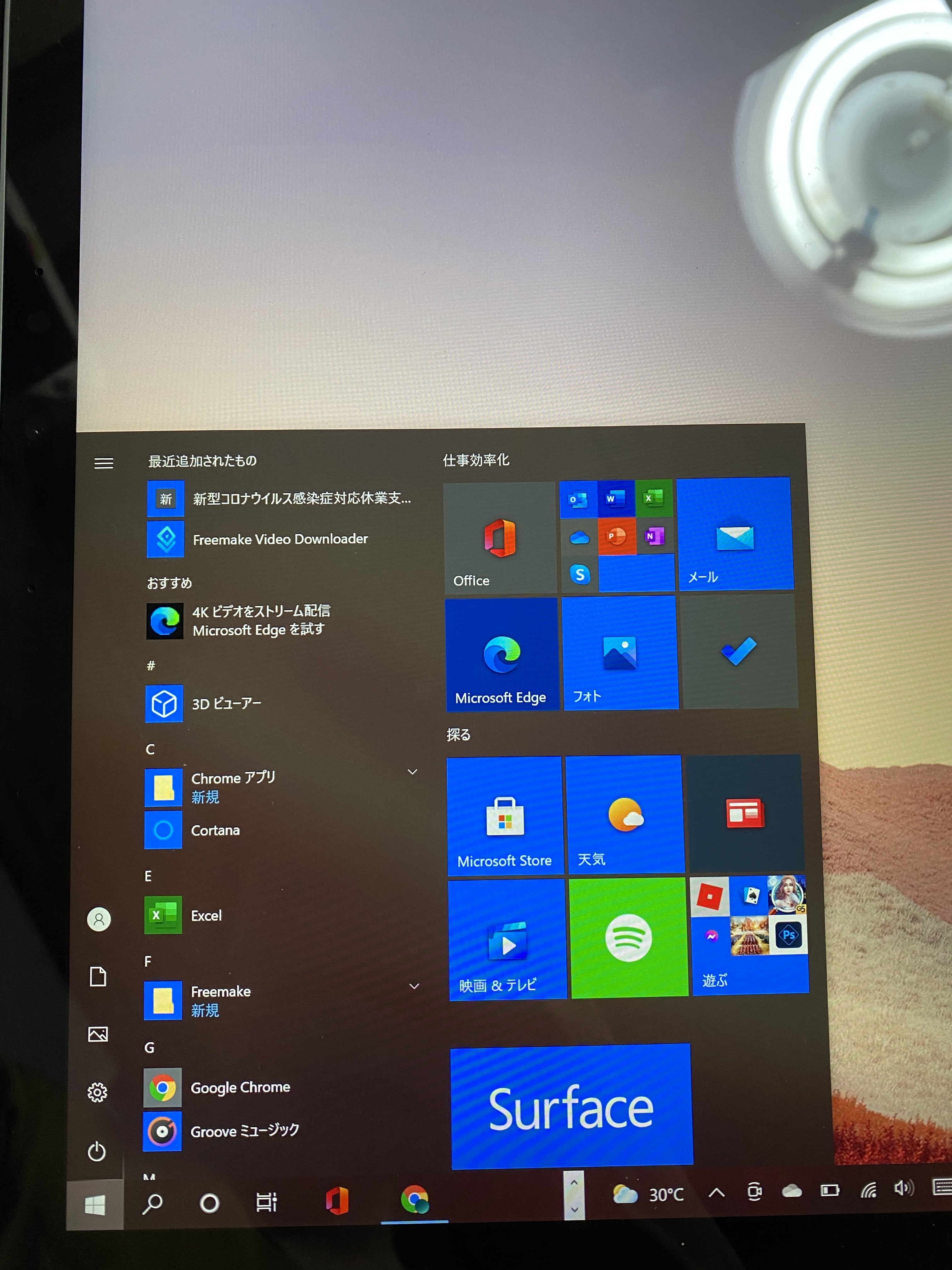 surface pro7はタッチ操作に対応しているので、画面に指で触れて操作できます。