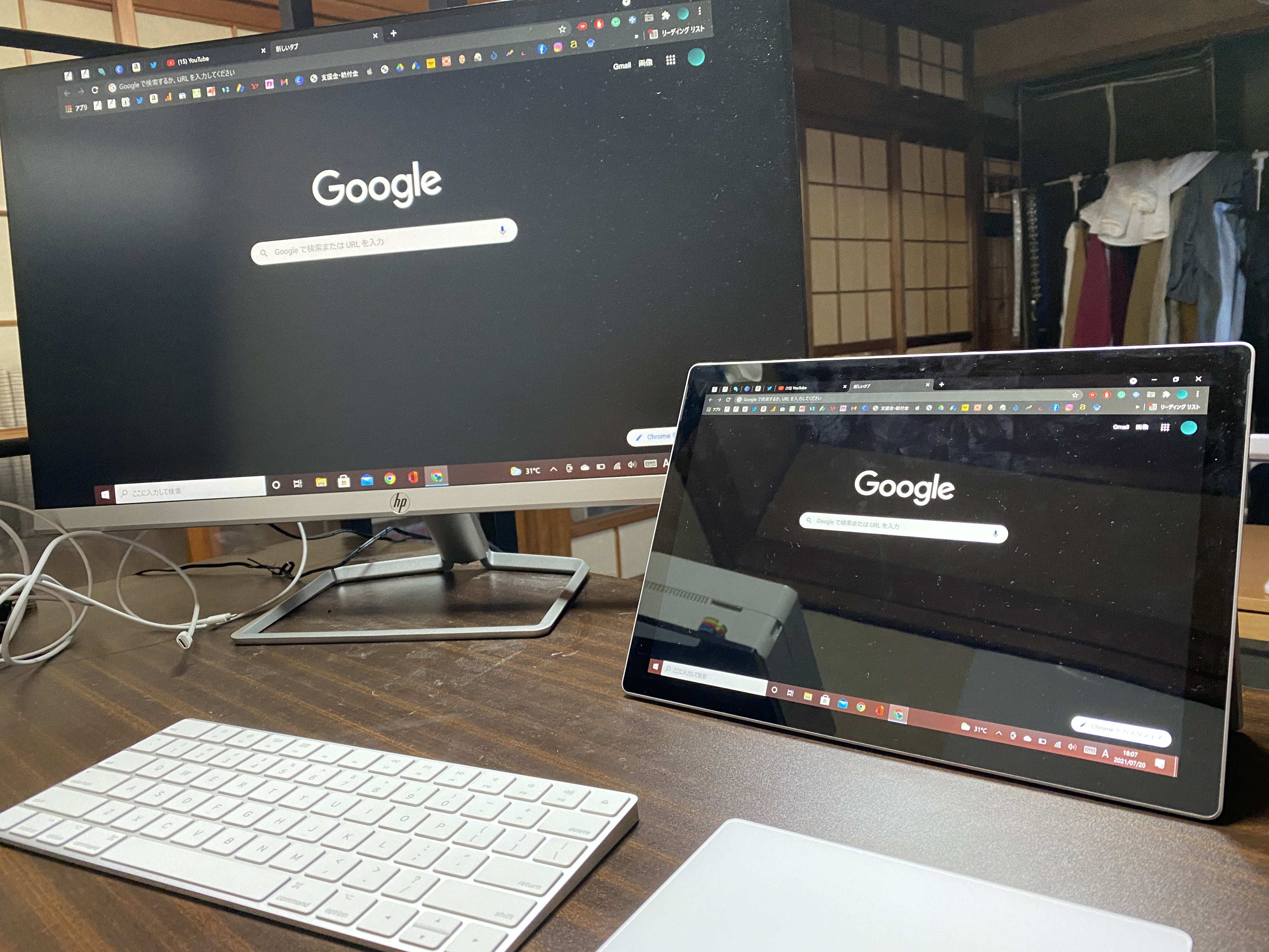 surface pro7はキーボードを完全に切り離せるので、サブモニターとして使うと快適です。▼