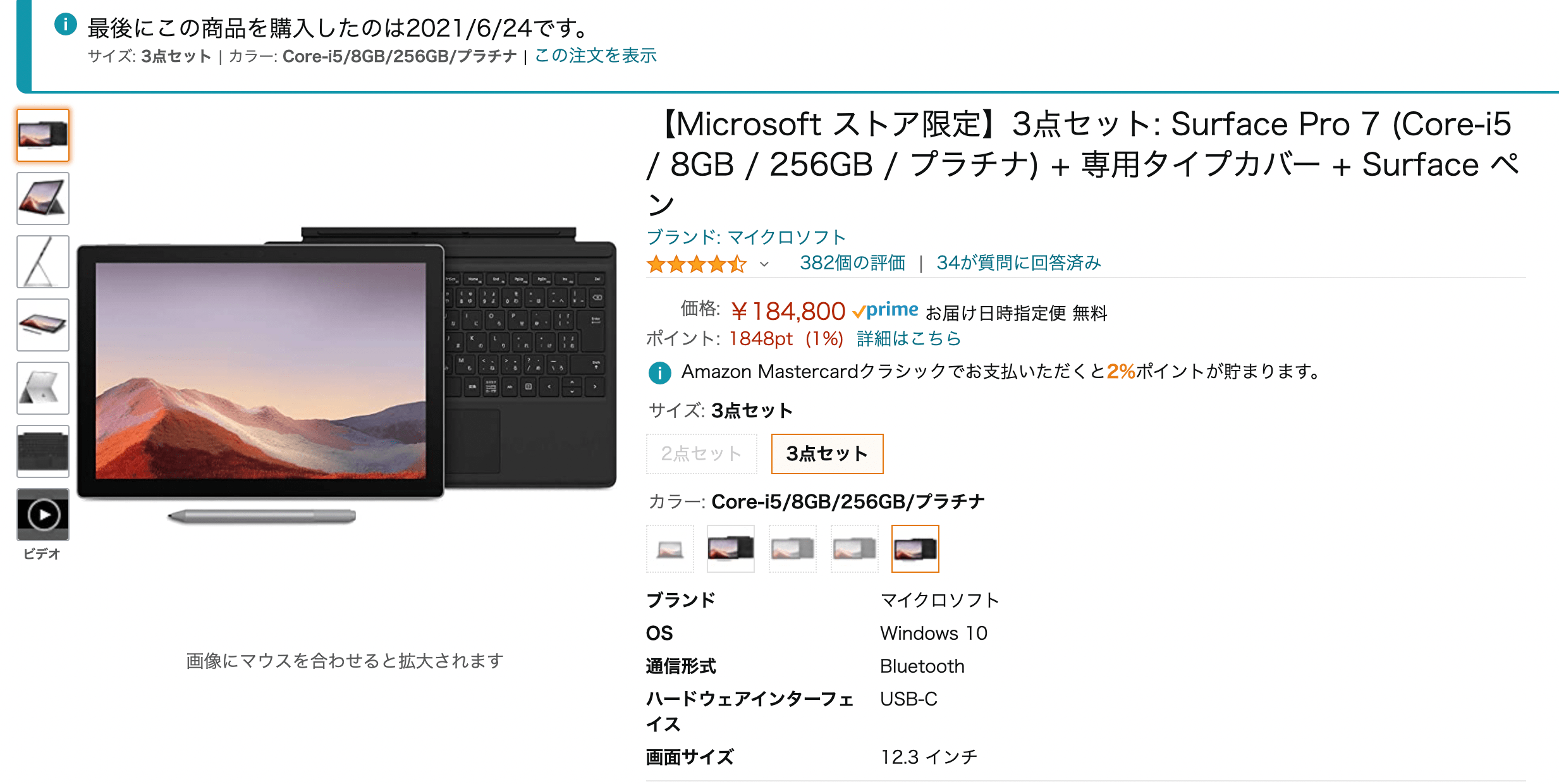 ちなみに、surface pro7はキーボードをいろいろ付け替えることができるという大きなメリットがあります。