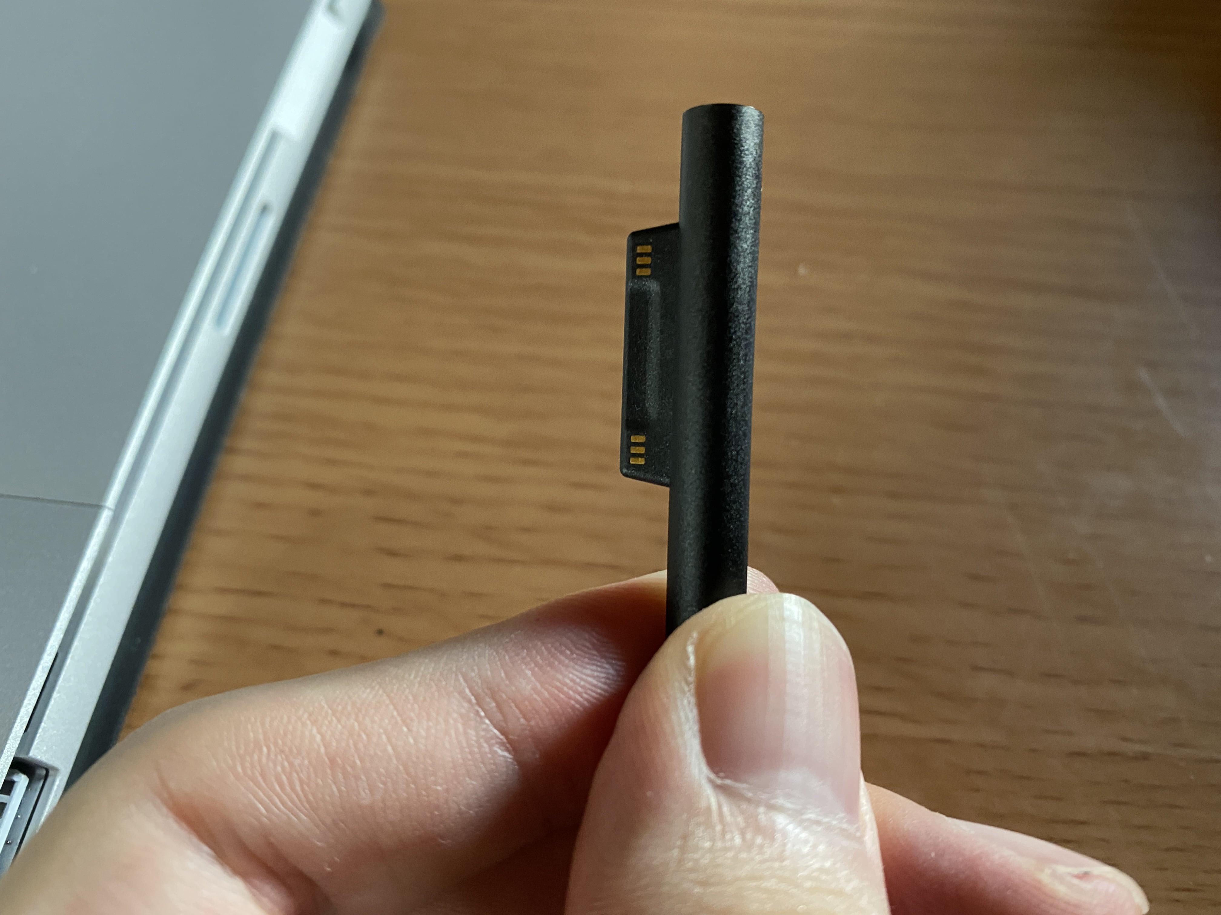 びっくしたのですが、surfaceの充電って、こんな特殊な細長い棒?みたいなもので、充電するんですね。▼