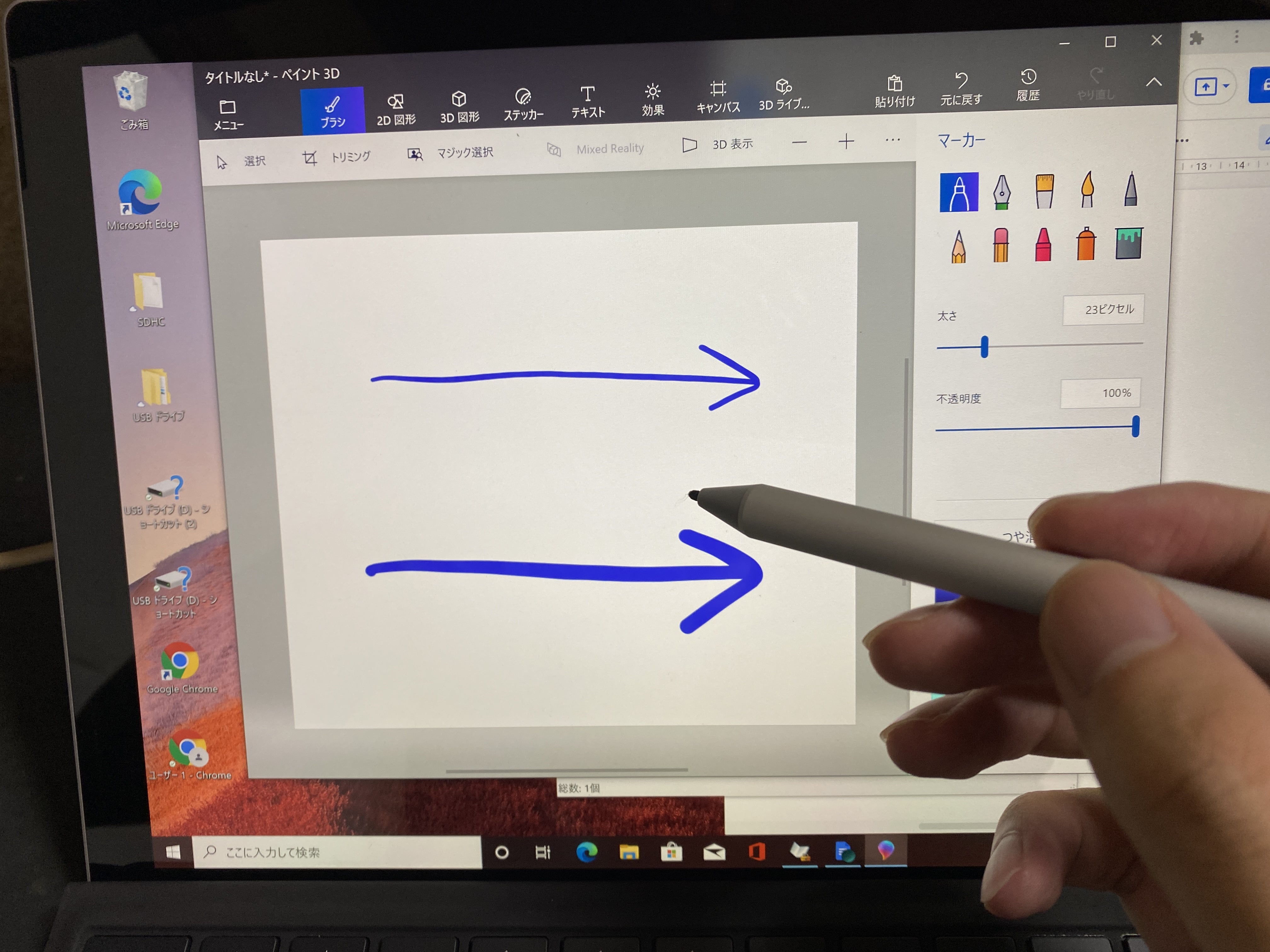 surfaceはタッチパネル対応なので、指で触れることもできますが、タッチペンがあるとより便利です。