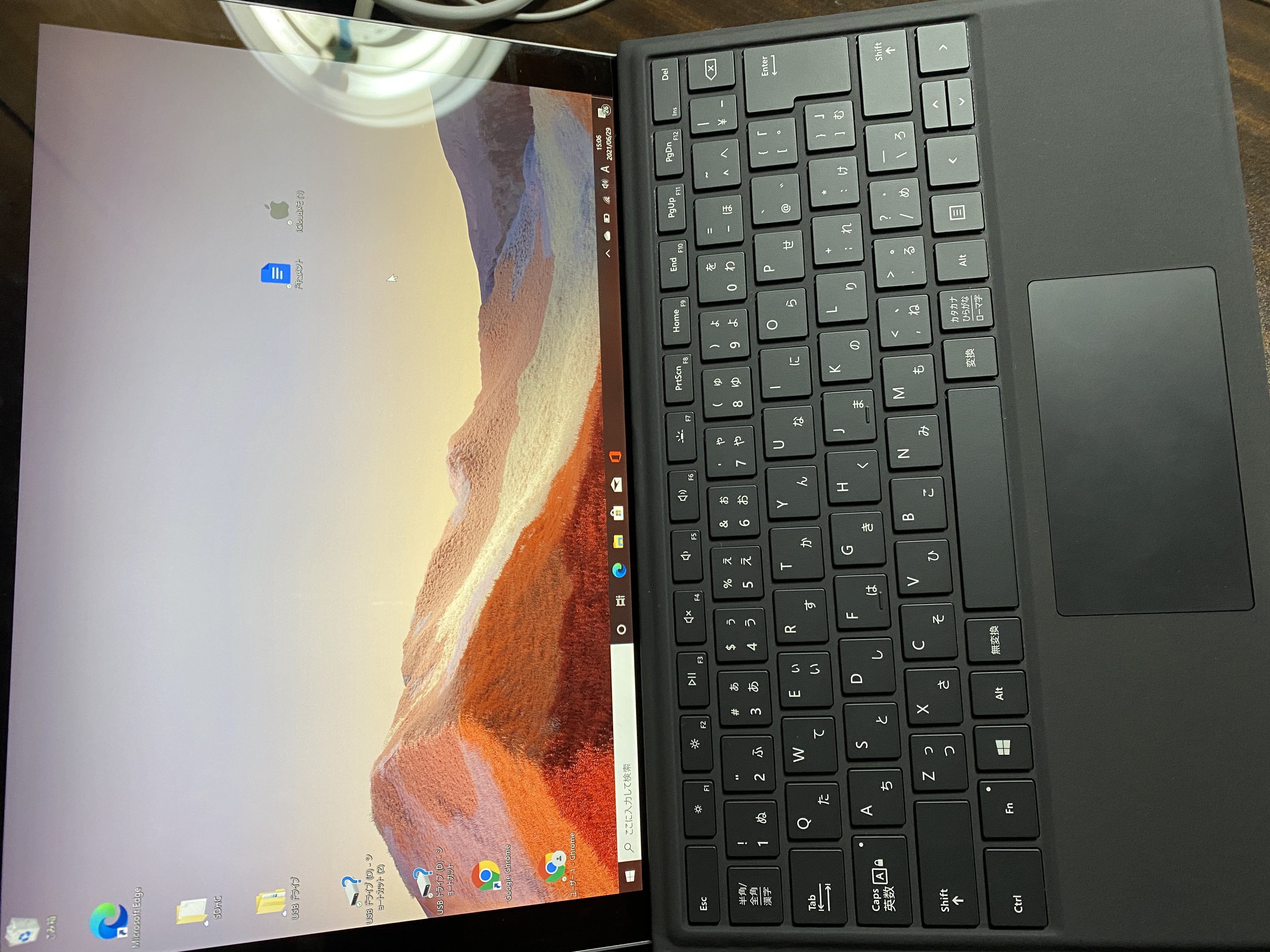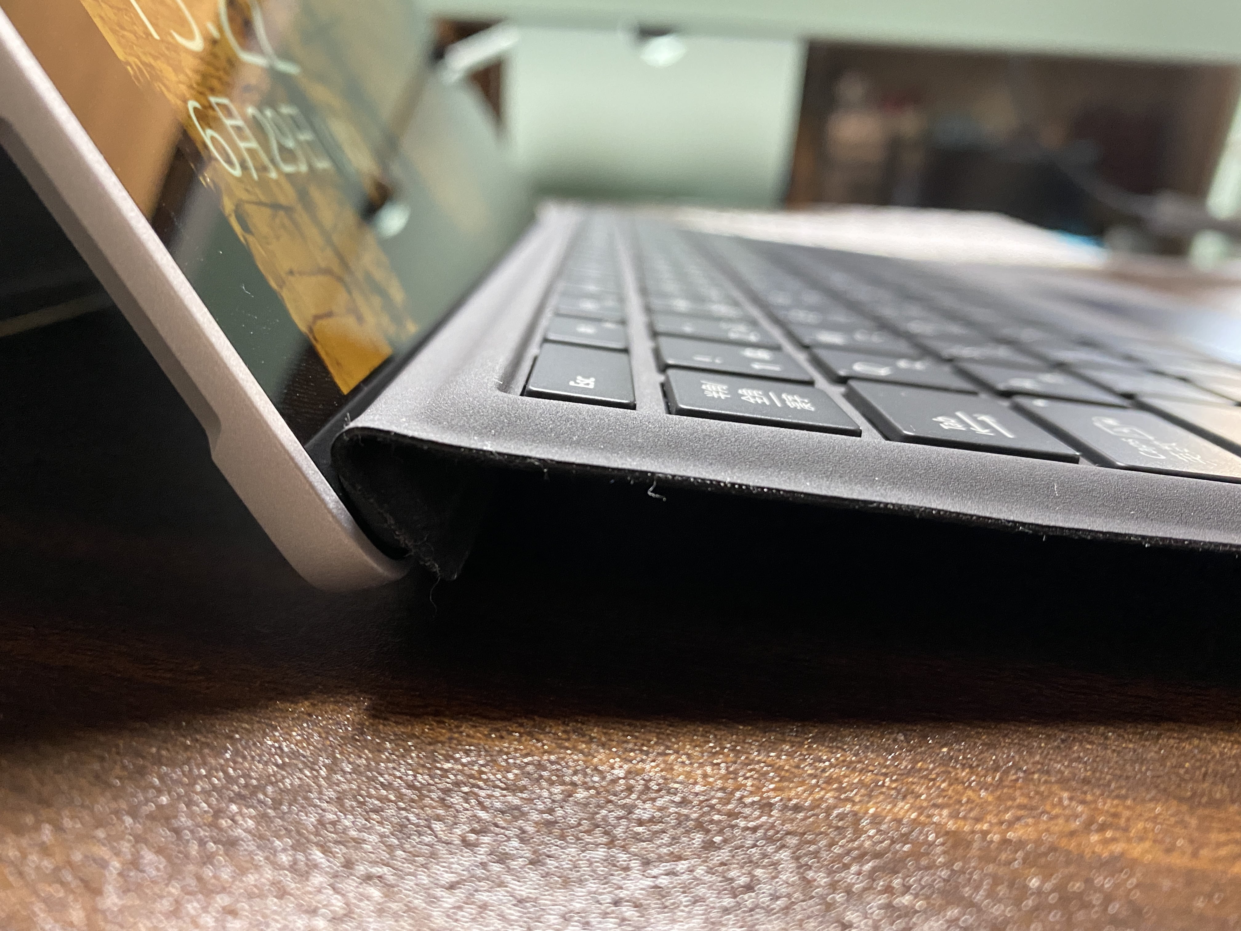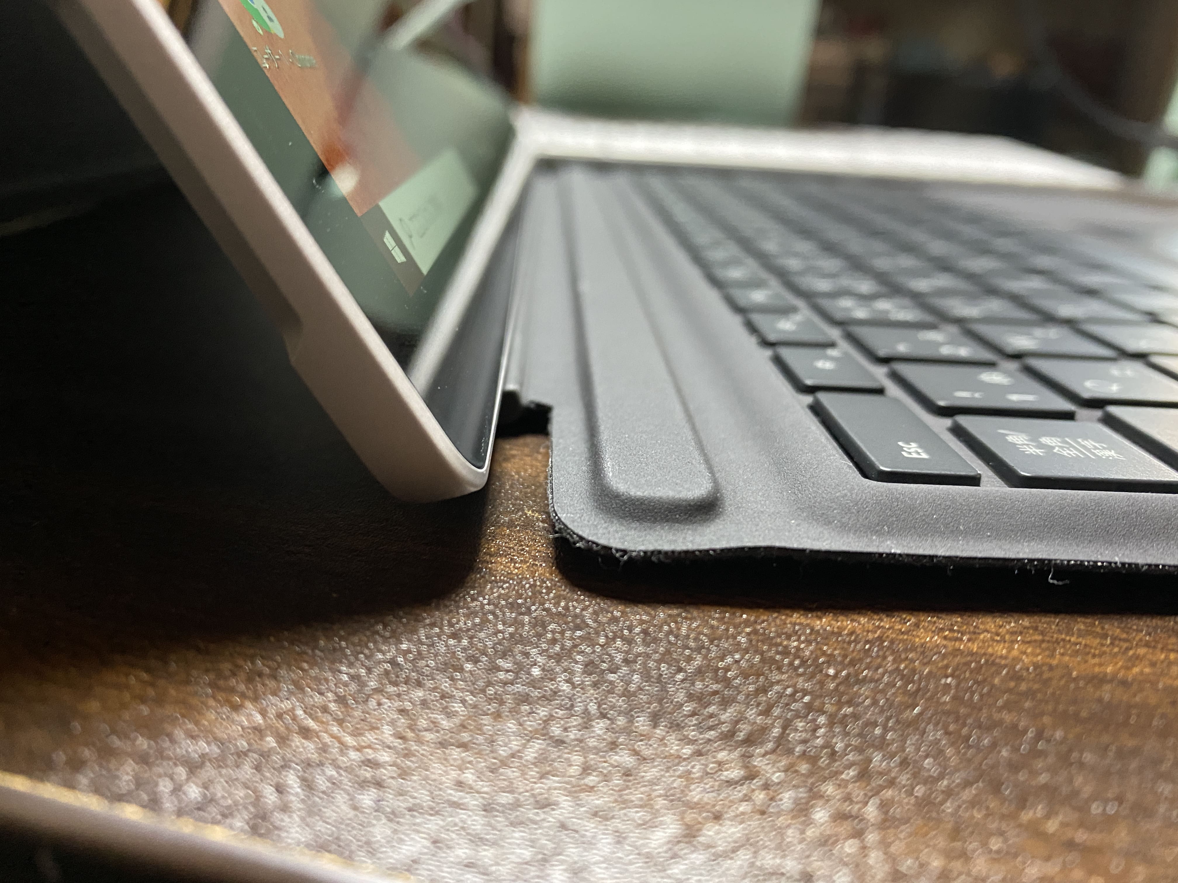 ただ、キーボードに角度をつけるとタスクバーをタッチしにくくなるので、僕は角度をつけずに平らにして使っています。▼