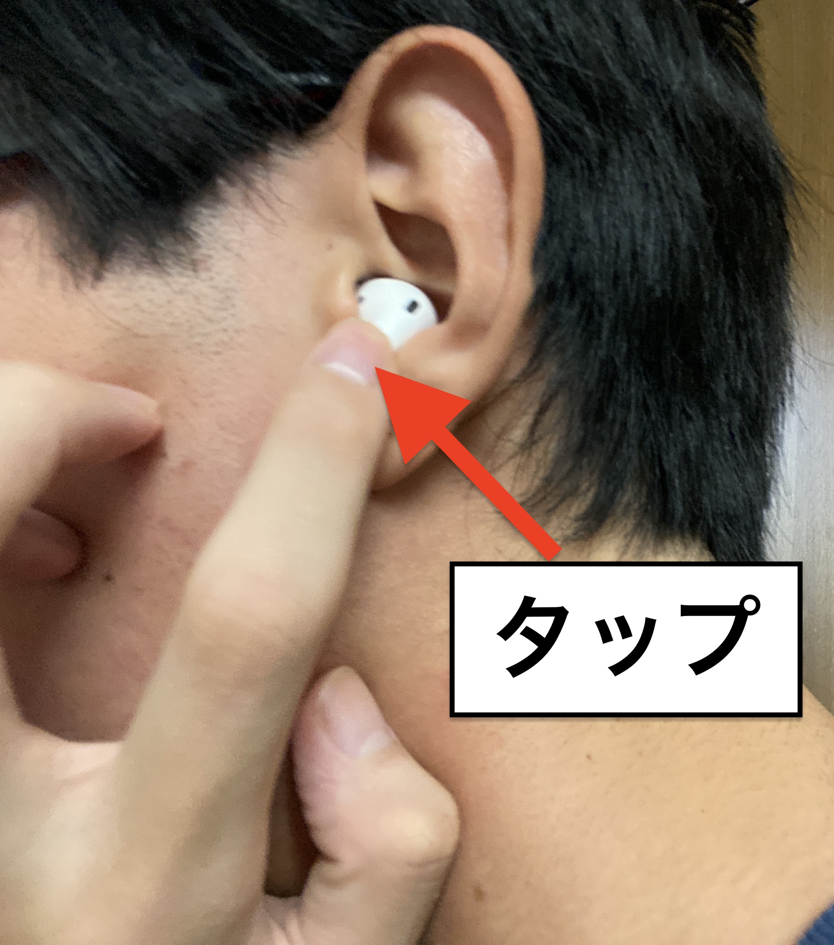 AirPodsは、耳につけた状態で指でタップすれば音楽の再生や停止などができます。▼