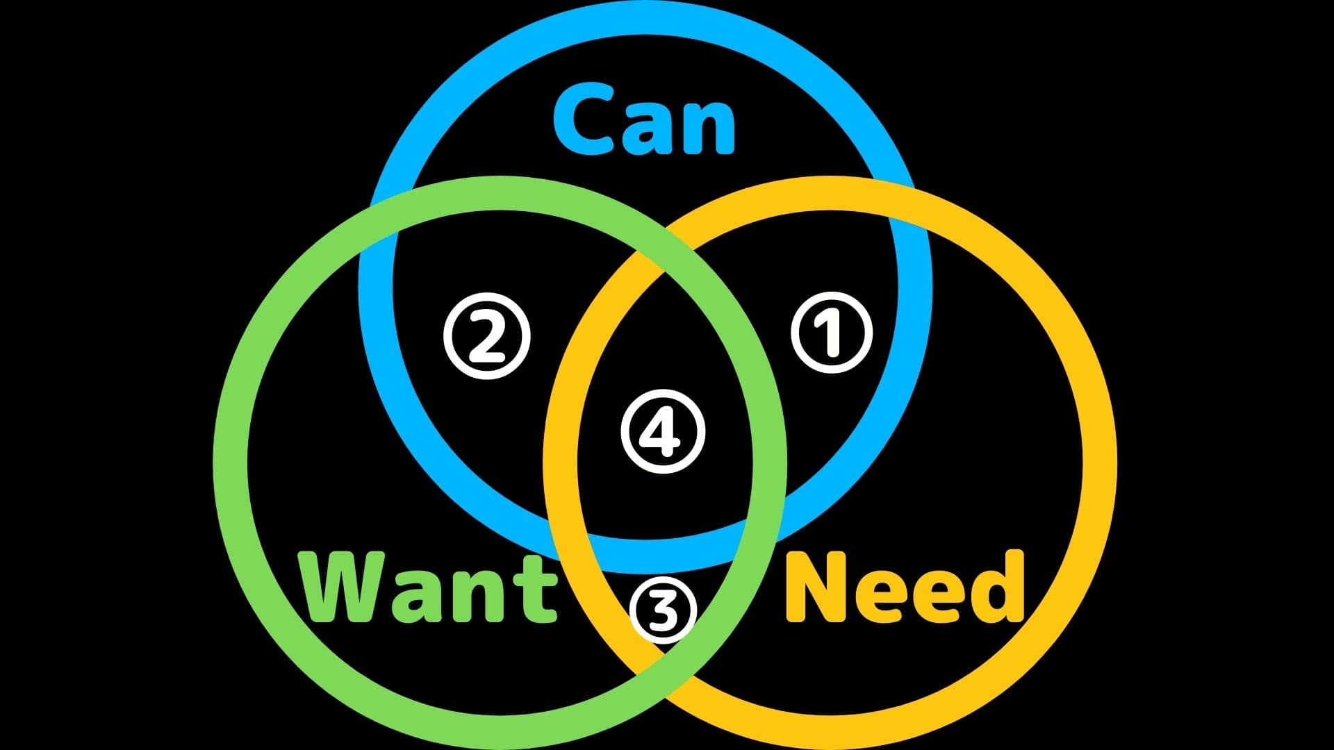 Can、Want、Needそれぞれに領域があり、それぞれ重なるところに①〜④が存在します。